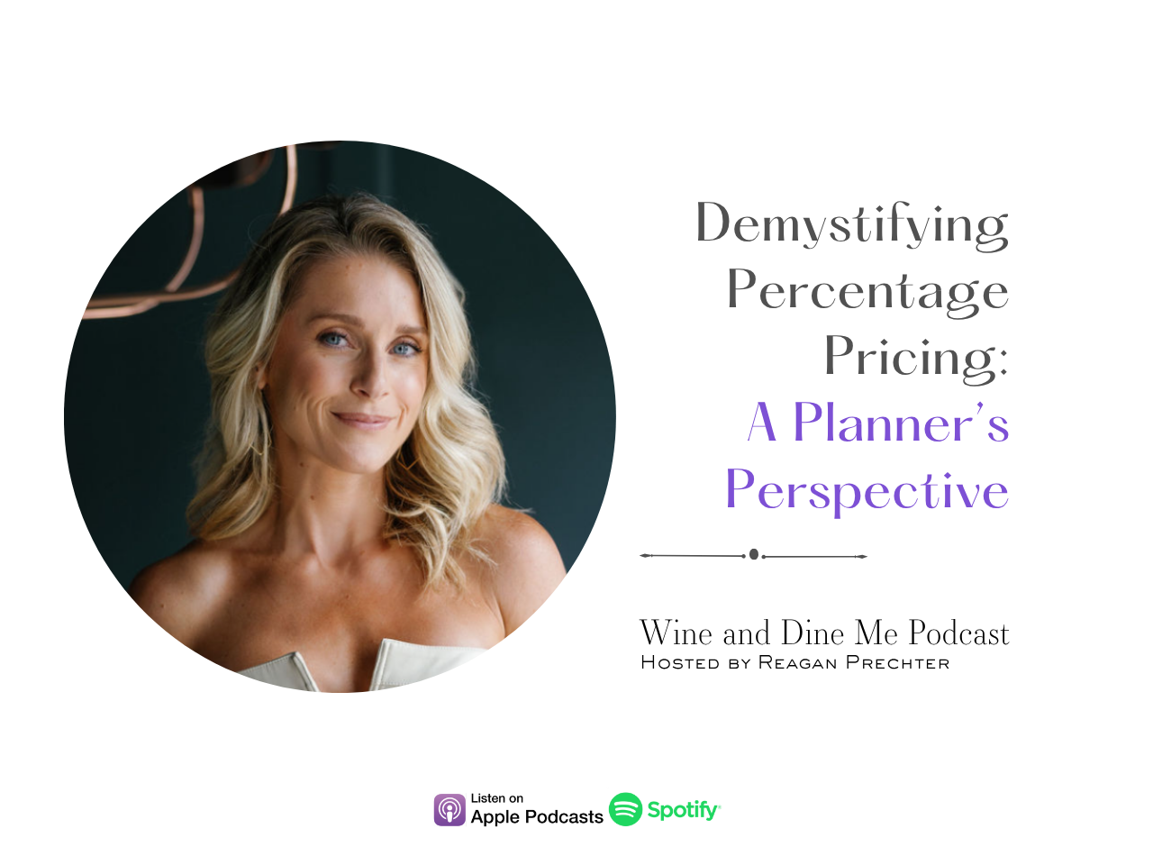 Tune in to our Wine and Dine Me Podcast in Apple Podcast and Spotify, where we explore all things weddings, life, and business.